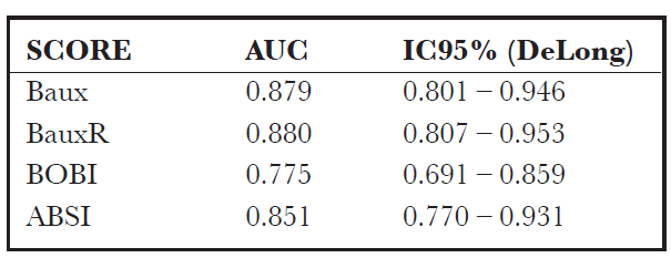 Los scores analizados fueron el Baux, Baux Revisado, BOBI y ABSI.