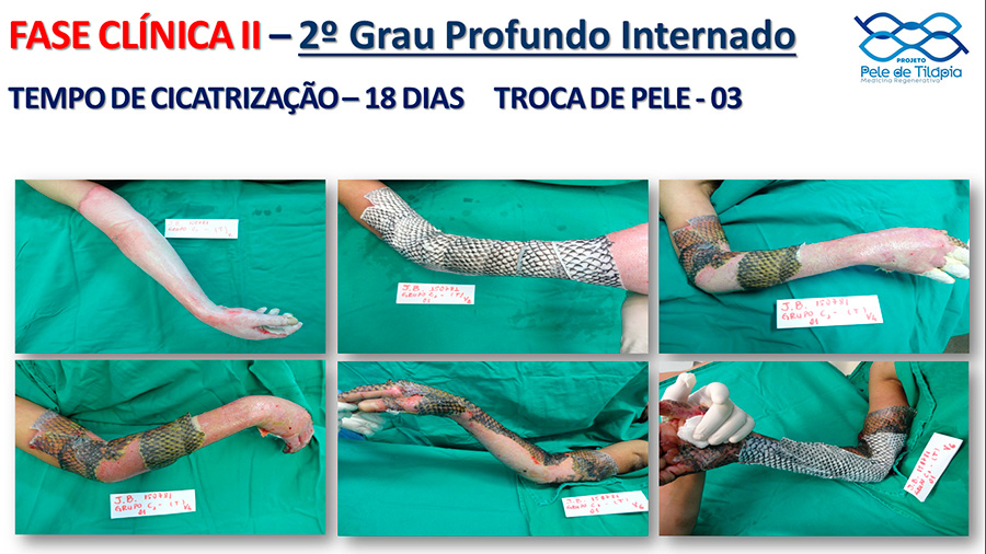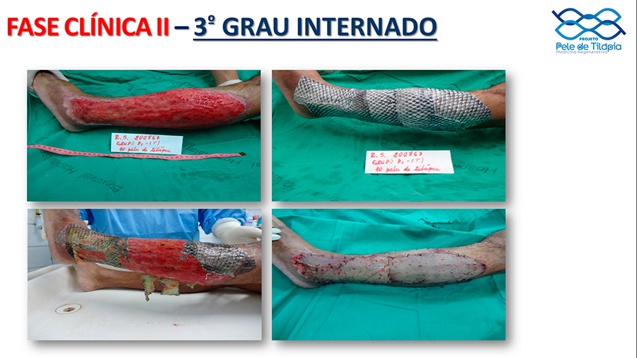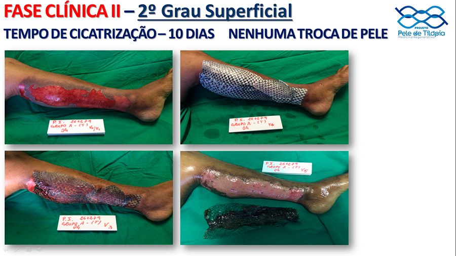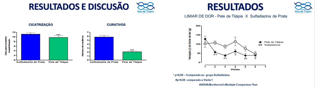 Os ensaios pré-clínicos in vivo, em modelos animais de queimaduras, evidenciaram uma excelente adesão do curativo à lesão, redução do exsudato, menor frequência de trocas, diminuição da dor e discreta aceleração do processo de cicatrização. Esses resultados fundamentaram o avanço para estudos clínicos em humanos, consolidando a pele de tilápia como um biomaterial promissor para aplicação em diversas áreas da medicina regenerativa, inovador, acessível e eficaz.